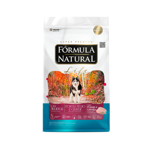 Ração Fórmula Natural Super Premium Life Adultos Mini e Pequeno Sabor Frango e Linhaça 7kg