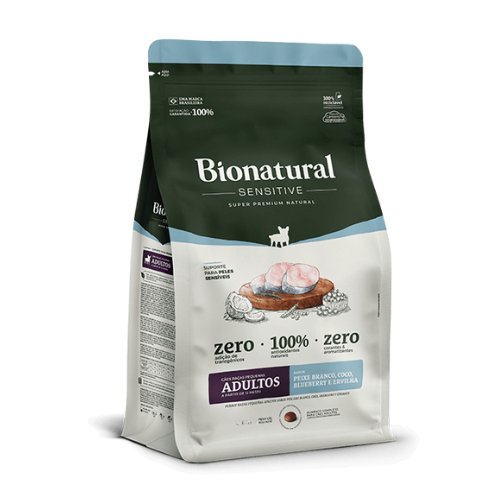 Ração Bionatural Sensitive Cães Adultos Raças Pequenas Sabor Peixe Branco 2,5kg